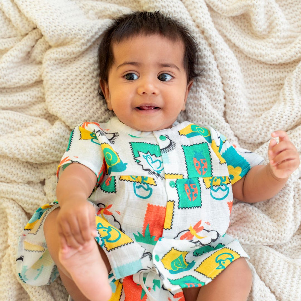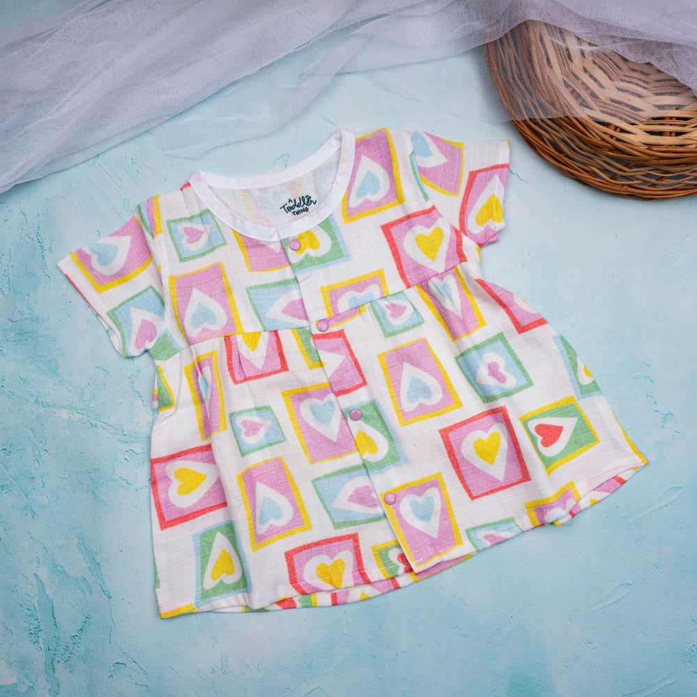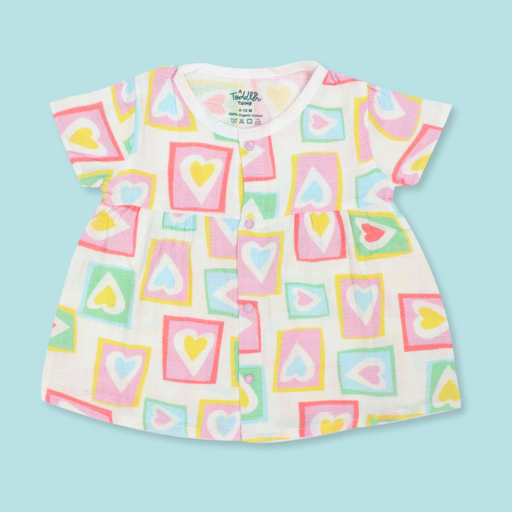Our Muslin Frock is thoughtfully designed for your baby’s comfort and your convenience. The front-open style with charming wooden buttons makes dressing your baby a breeze. Crafted from ultra-soft muslin cotton, it keeps your baby cool, calm, and cozy throughout the day.