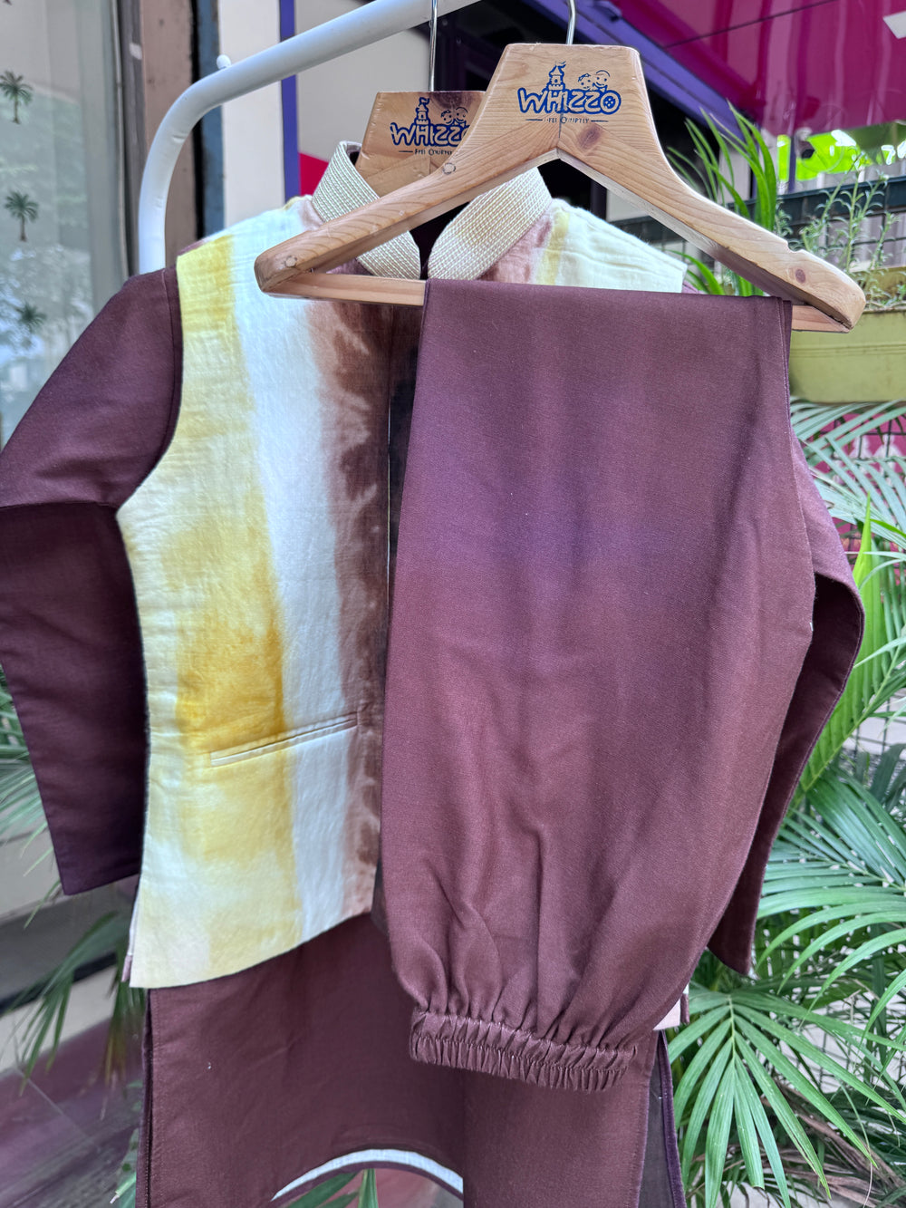 Color: Brown Kurta with Beige-Gold Ombre Jacket