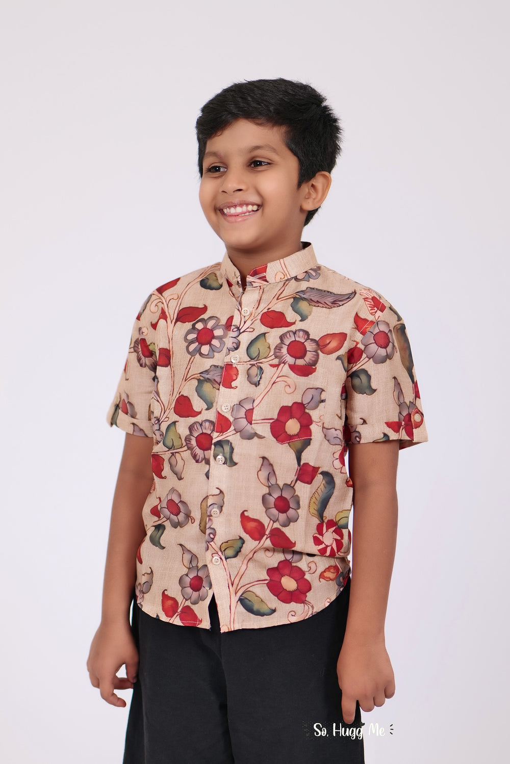 Inspired by ancient Indian craft, this vibrant shirt brings tradition into modern fashion. Made from soft Mul Mul cotton, it ensures breathability and comfort all day long. The Ajrakh-inspired detailing adds a touch of cultural beauty, making it suitable for festive occasions and stylish everyday wear.