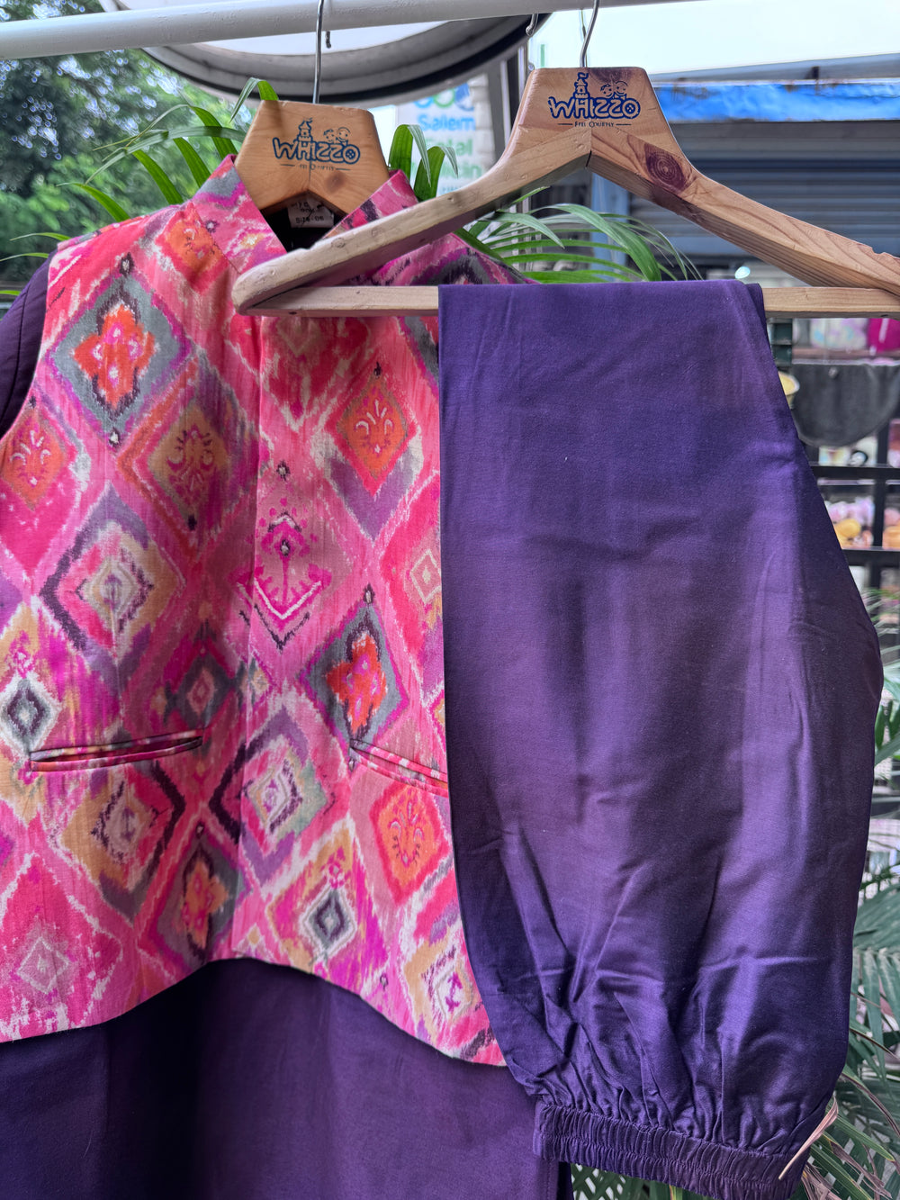 Color: Deep Purple Kurta with Multicolor Ikat Jacket