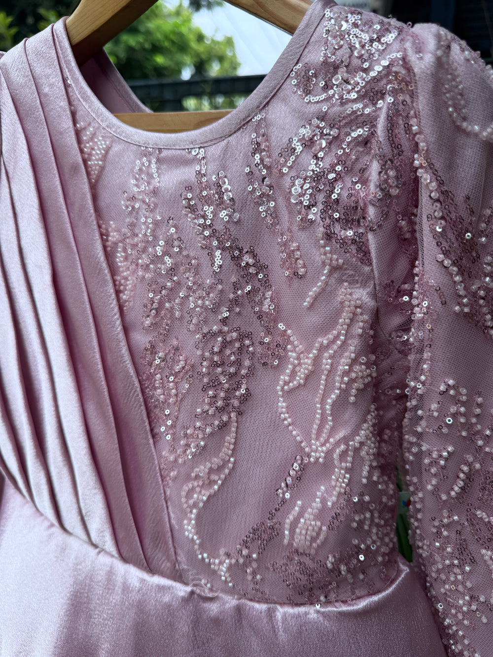 This gown strikes the balance between princess vibes and modern elegance, making your child shine at every special event. The pastel peach tone is flattering on all skin tones and pairs beautifully with matching accessories.