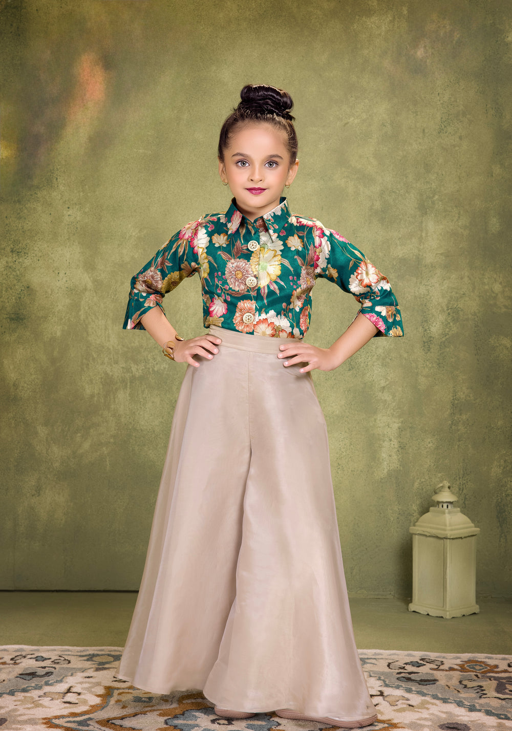 Make your princess stand out in this Floral Brocade Shirt & Palazzo Set, a fusion of elegance and charm. Designed for stylish girls aged 4 to 18 years, this outfit is a perfect blend of traditional richness and modern silhouette.