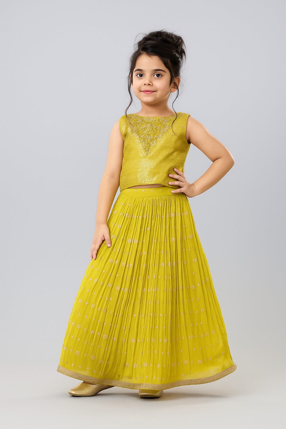 Brighten up every celebration with this radiant Floroascant Yellow Lehenga Choli, designed for girls aged 1 to 6 years. A perfect mix of festive sparkle and playful elegance, this outfit is sure to make your little one the star of every occasion.