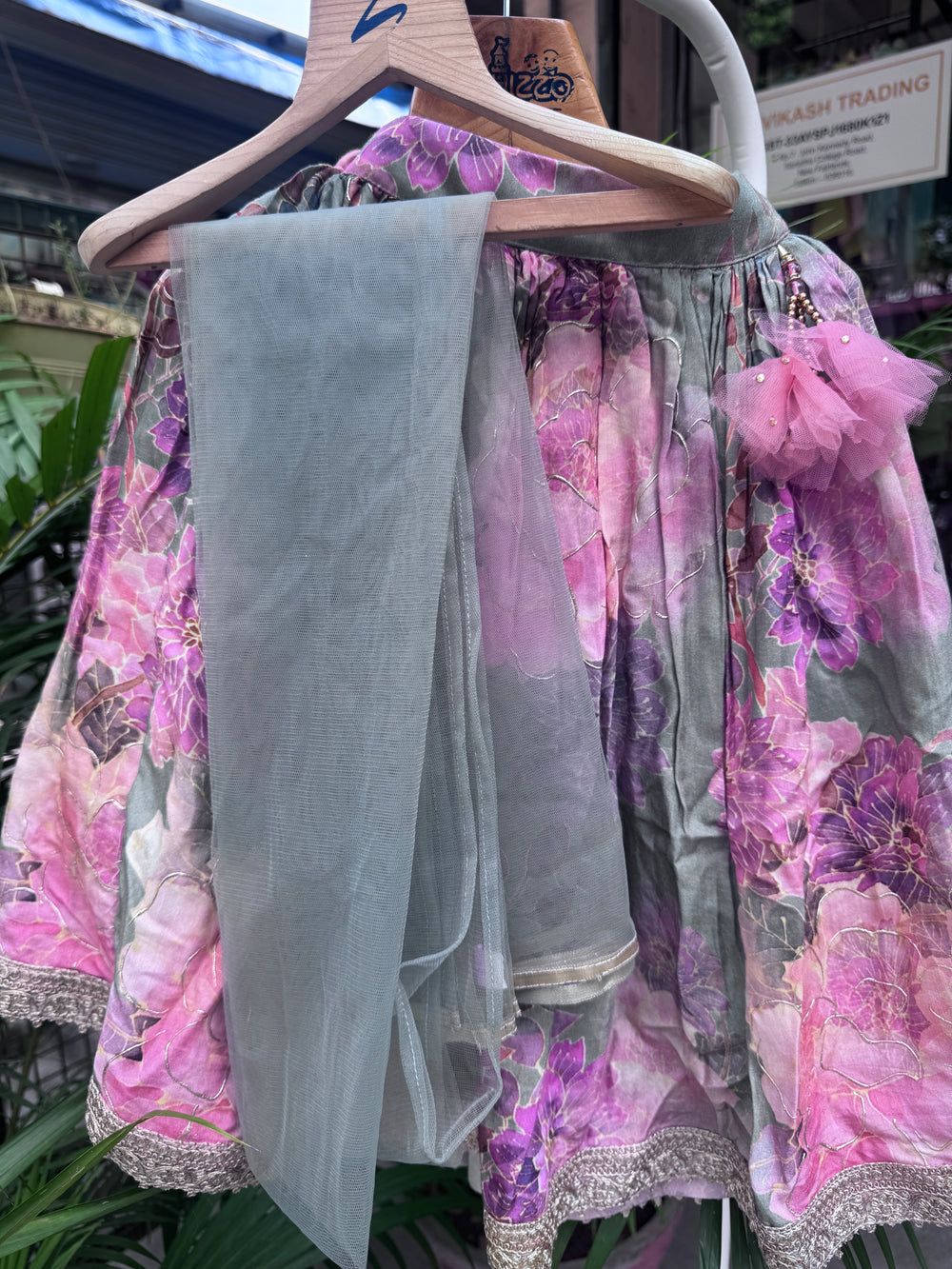 A cute organza tassel latkan on the lehenga adds a playful, stylish touch that children love.