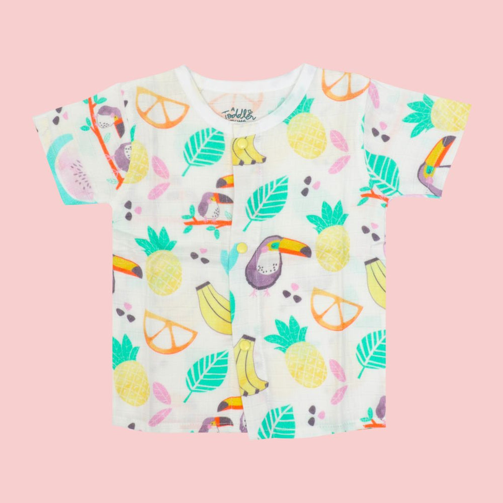 Crafted entirely from a lightweight organic Muslin cotton variant, these sleep suits ensure day and night comfort for your little one, thanks to the renowned softness of Muslin fabric.