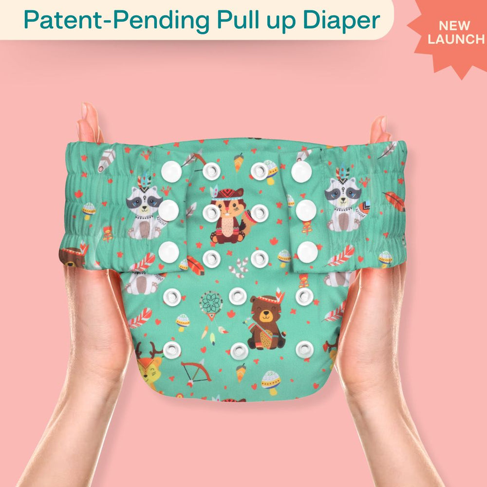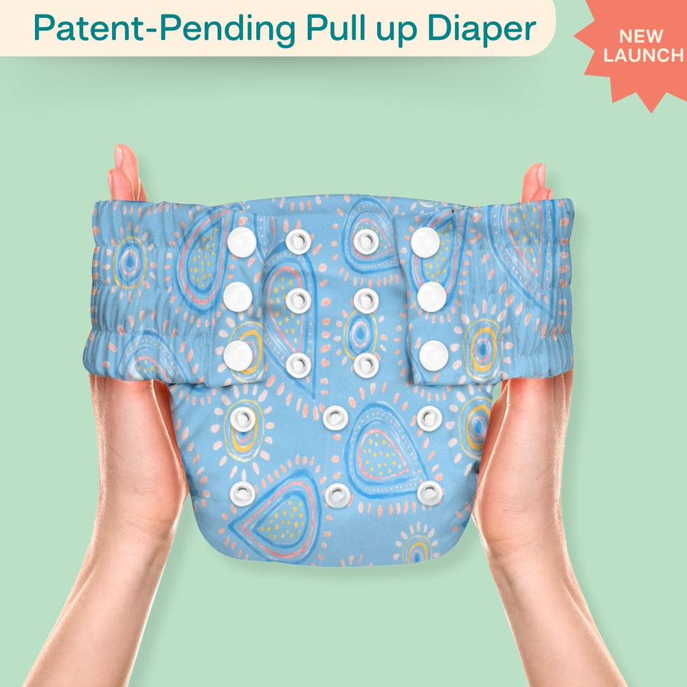 FIRST EVER ! We are the pioneers in revolutionizing cloth diapering with our exclusive patent-pending design! This isn't just another cloth diaper – it’s a game-changer that combines the ease of a pull-up diaper with the flexibility of adjustable snap buttons. Designed for ultimate comfort, convenience, and superior absorbency, this diaper is set to redefine diapering for modern parents!