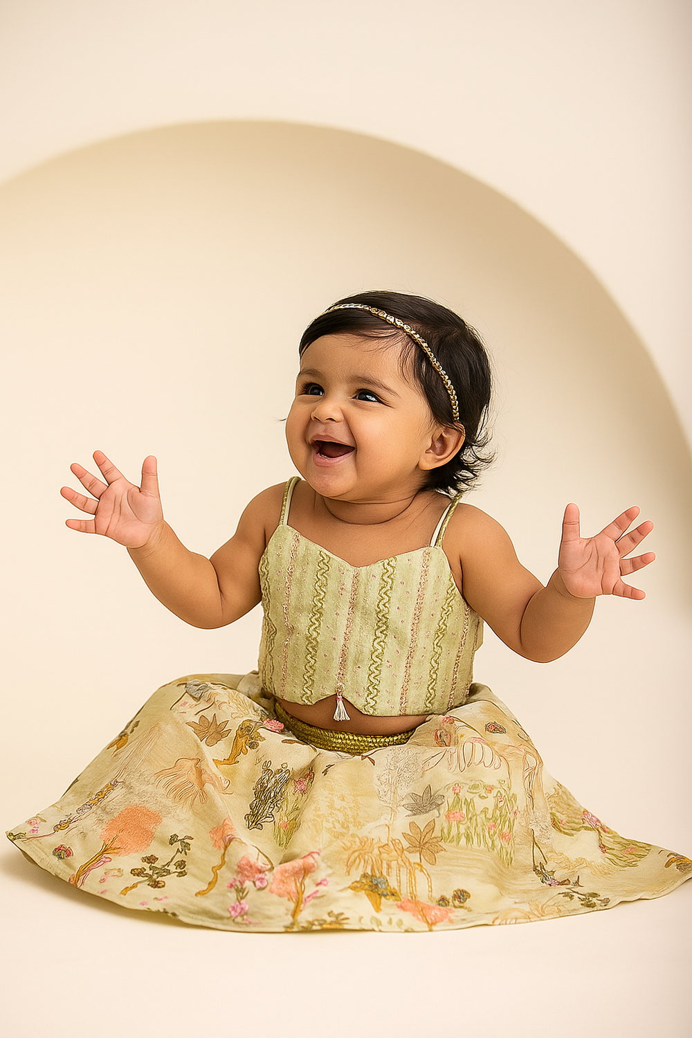 Dress your little one in charm and comfort with our Modal Silk Lehenga Choli Set, designed exclusively for girls aged 1 to 6 years.