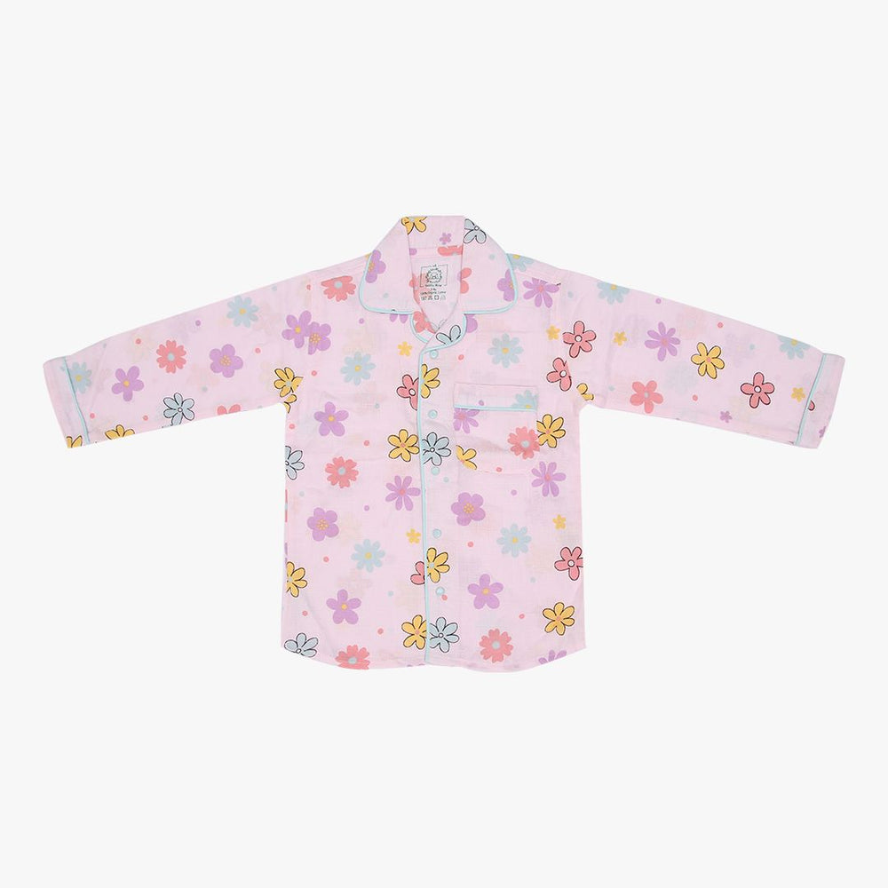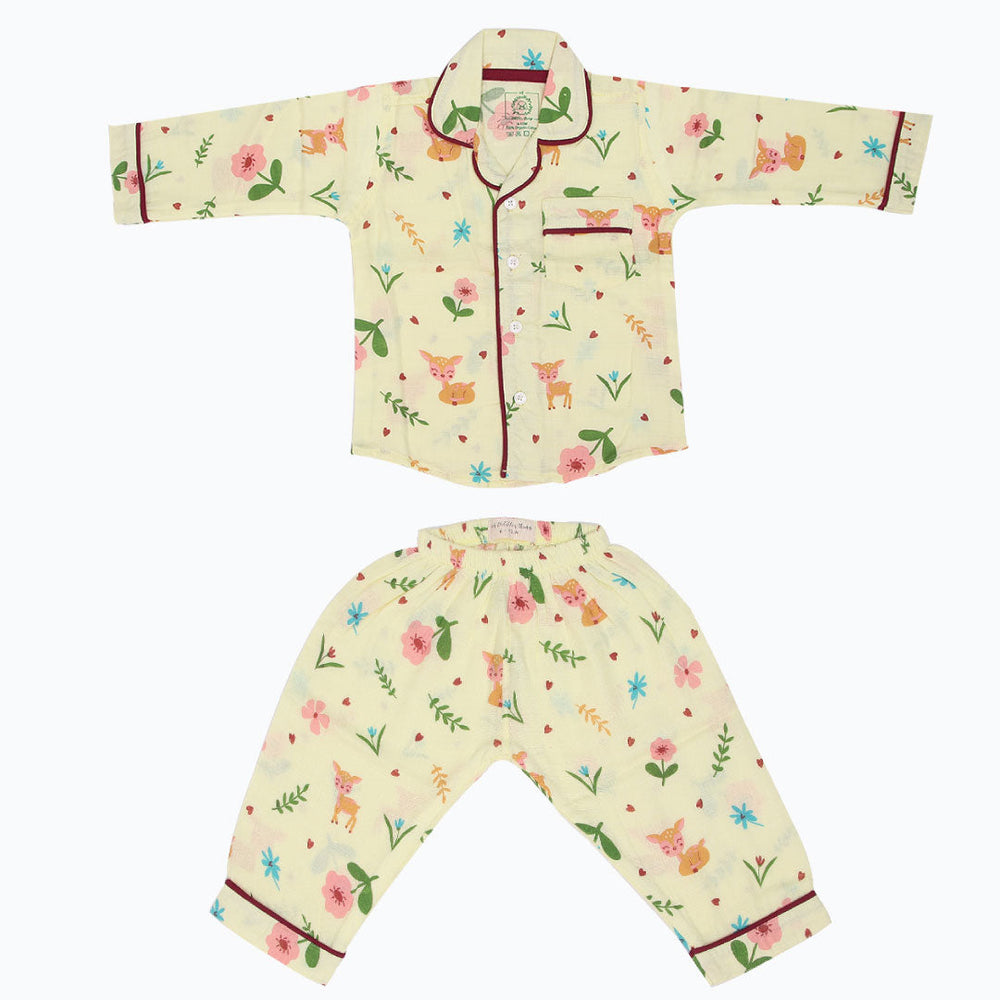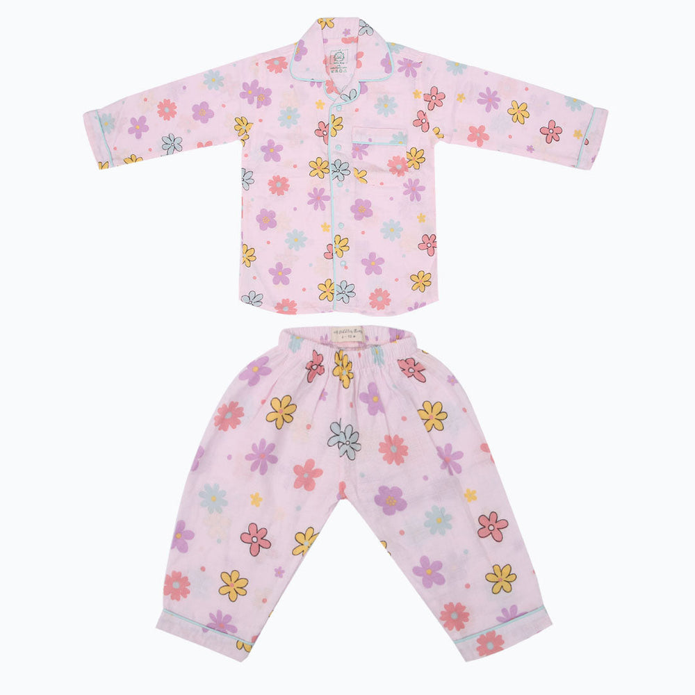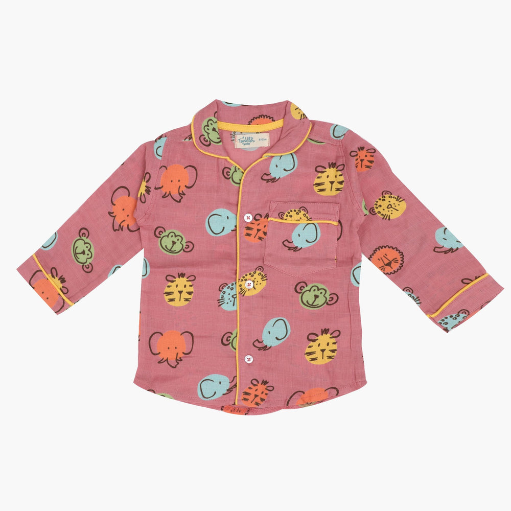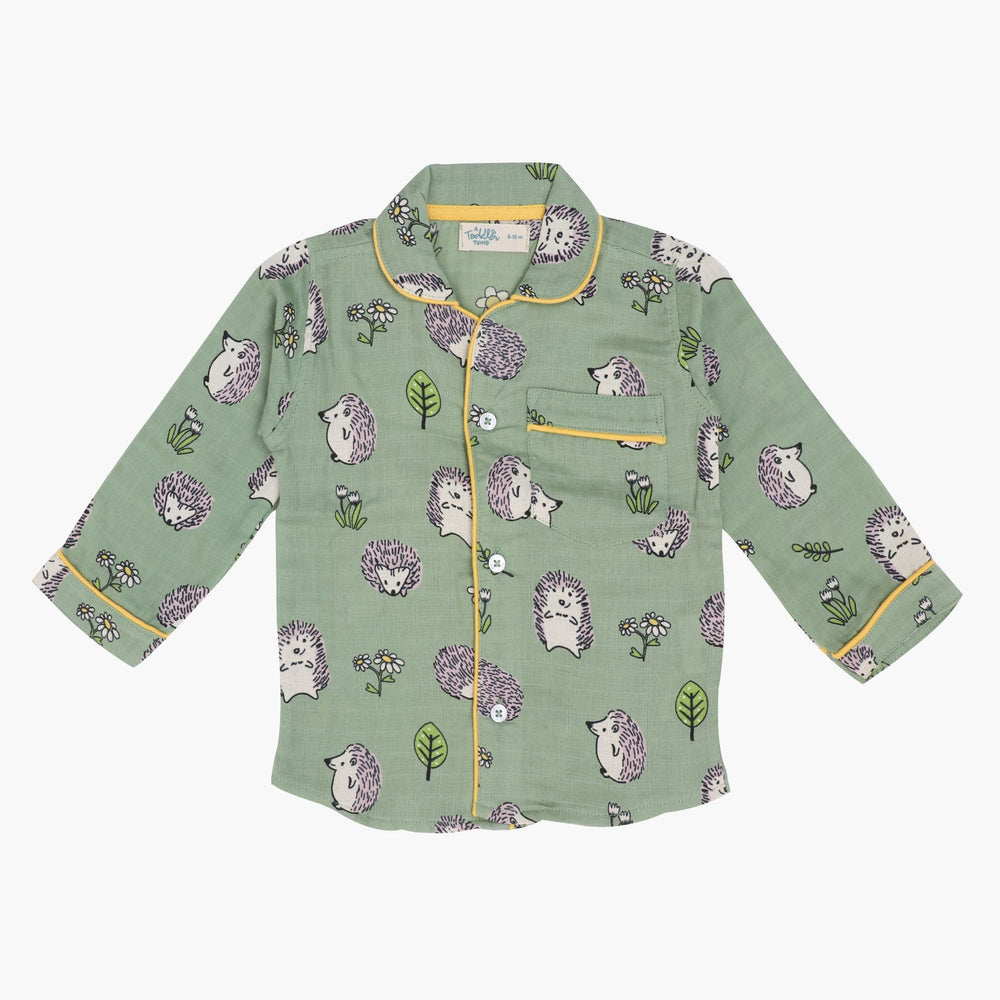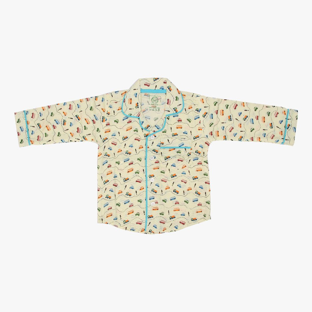 As for our full-sleeve sleepsuits, expertly crafted with AZO-free dyes, they come in a vibrant range of colours, each adorned with hand-embroidered motifs. The complete ensemble in this case includes stretchable pants, button-down collared shirts, and a convenient front pocket.