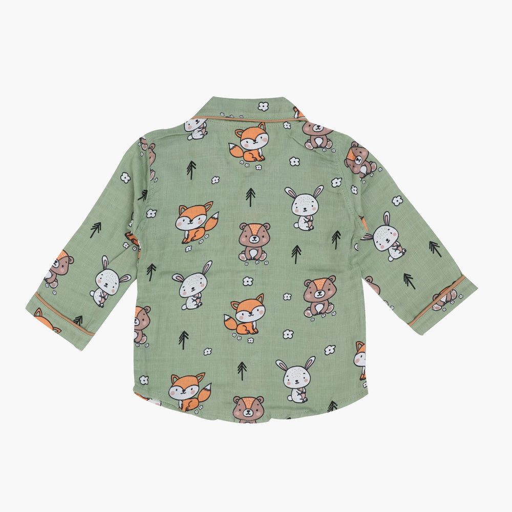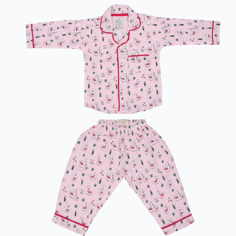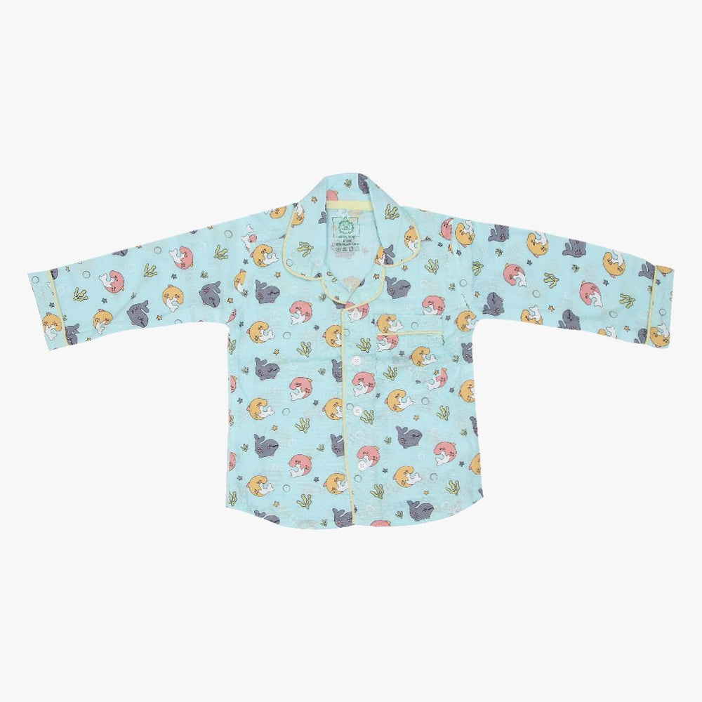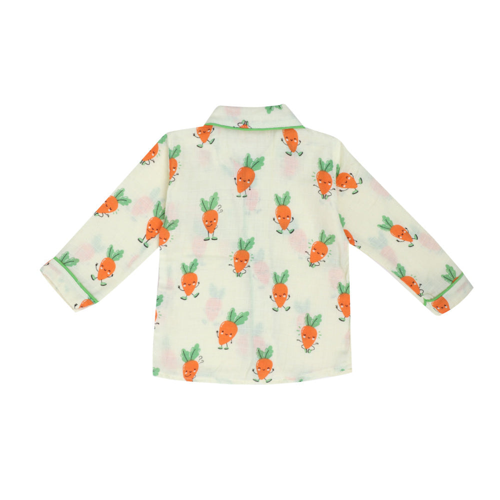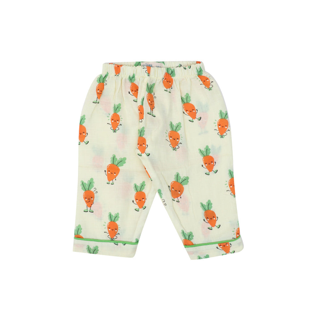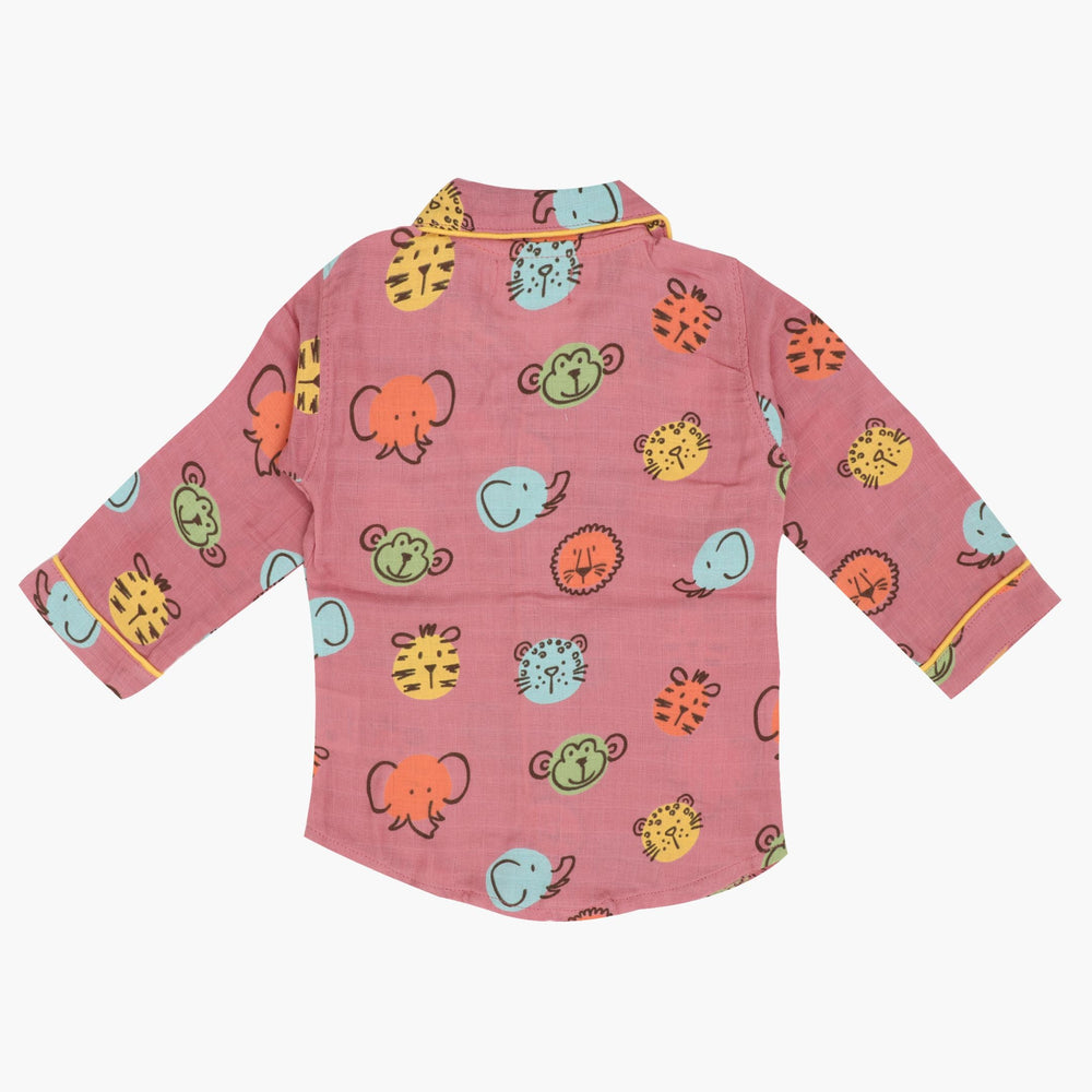 As for our full-sleeve sleepsuits, expertly crafted with AZO-free dyes, they come in a vibrant range of colours, each adorned with hand-embroidered motifs. The complete ensemble in this case includes stretchable pants, button-down collared shirts, and a convenient front pocket.