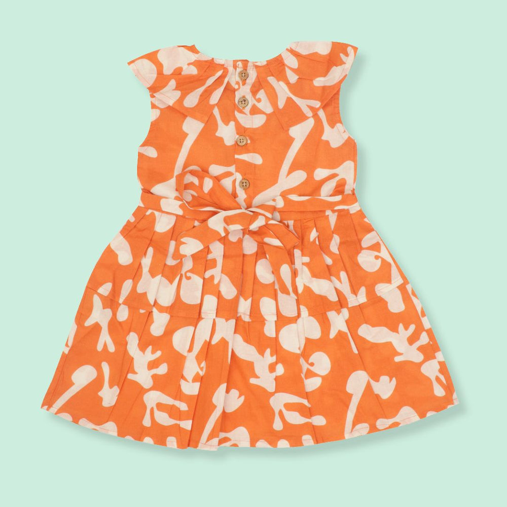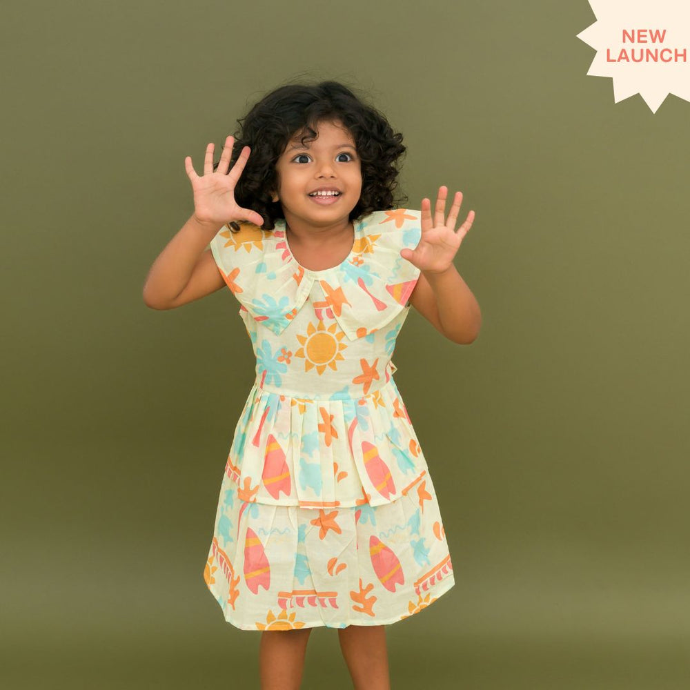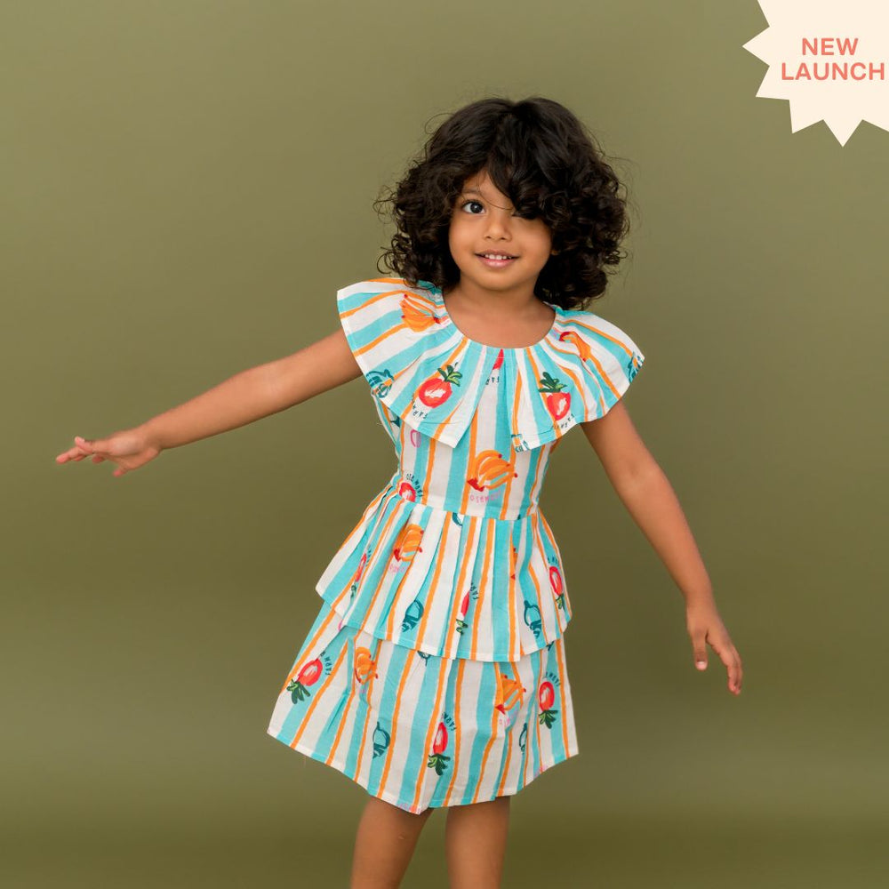Elevate your little one’s wardrobe with this effortlessly charming sleeveless frock. The playful two-layer frill at the bottom and delicate frill along the neckline add a graceful touch, while the wooden buttons and adjustable back tie ensure a secure yet flexible fit. Made from soft, breathable cotton, this frock is perfect for summer, keeping your child cool and comfortable. Plus, the fabric is pre-washed to prevent bleeding or fading, ensuring long-lasting vibrancy and durability.