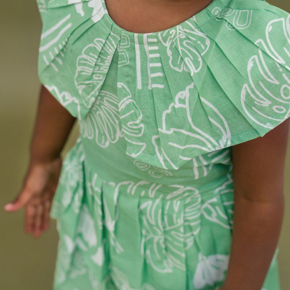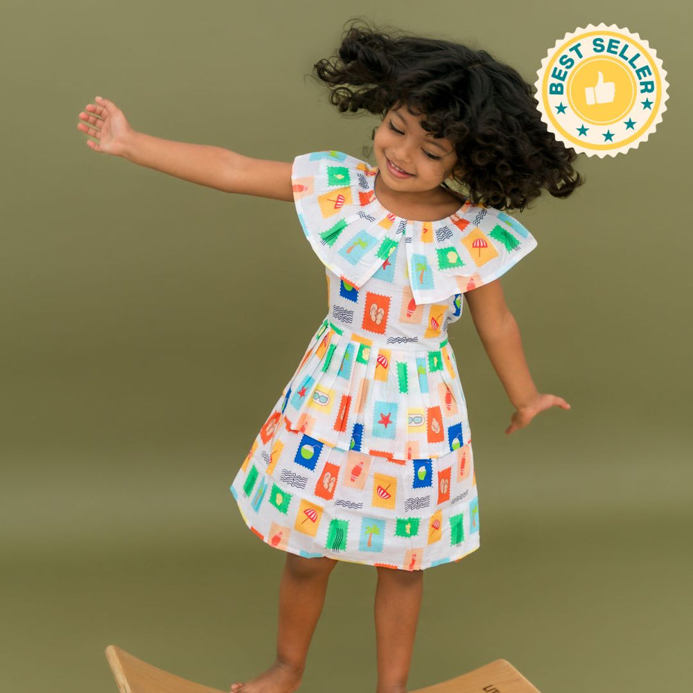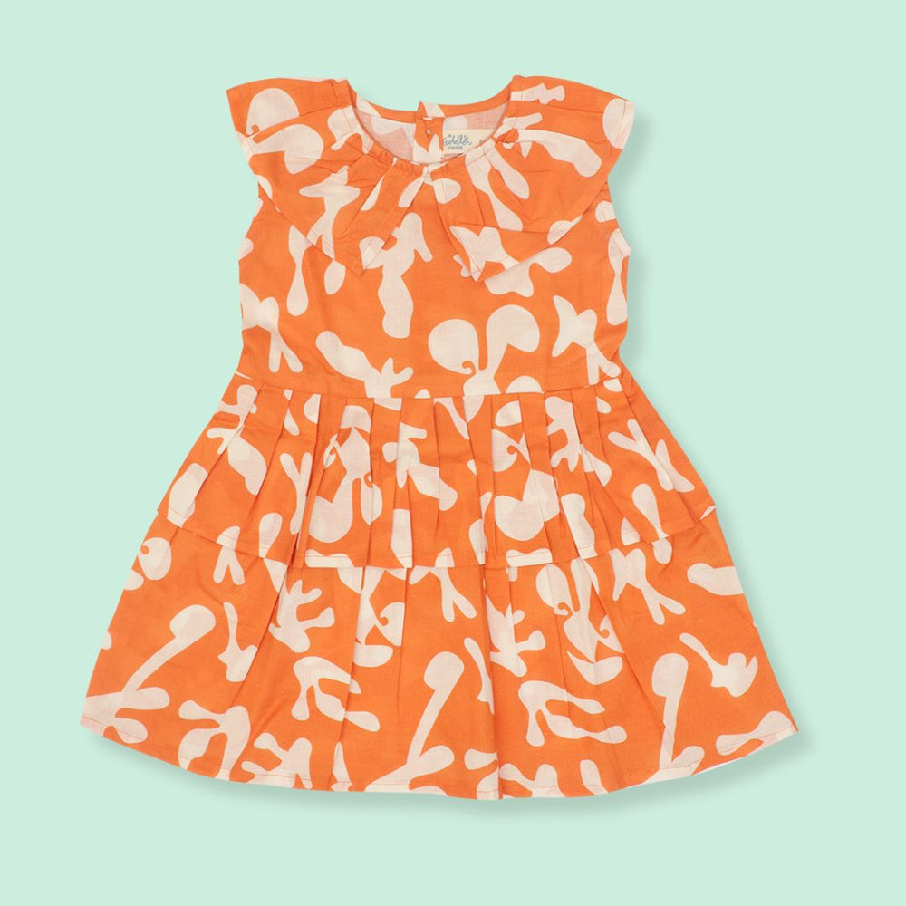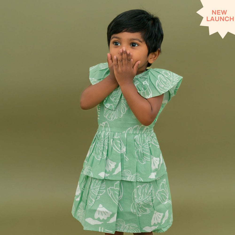 Elevate your little one’s wardrobe with this effortlessly charming sleeveless frock. The playful two-layer frill at the bottom and delicate frill along the neckline add a graceful touch, while the wooden buttons and adjustable back tie ensure a secure yet flexible fit. Made from soft, breathable cotton, this frock is perfect for summer, keeping your child cool and comfortable. Plus, the fabric is pre-washed to prevent bleeding or fading, ensuring long-lasting vibrancy and durability.