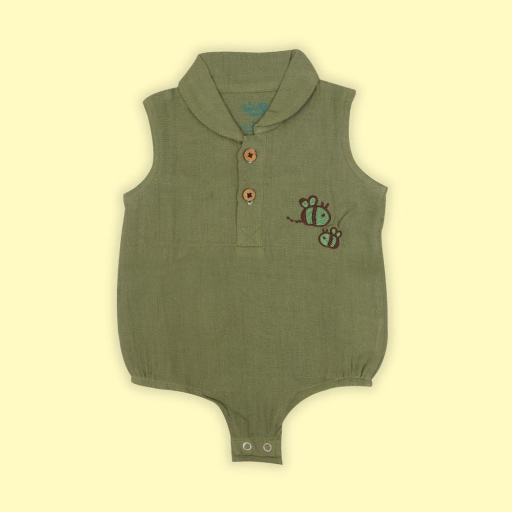Meet A Toddler Thing’s lightweight Muslin Bee Romper with delicate embroidery and convenient snap buttons!